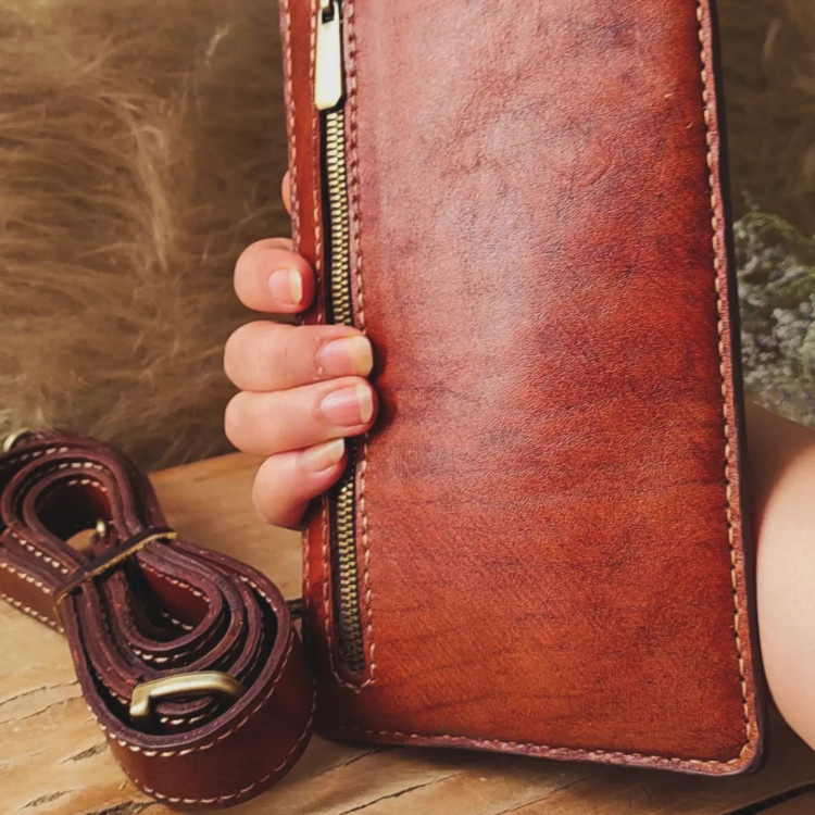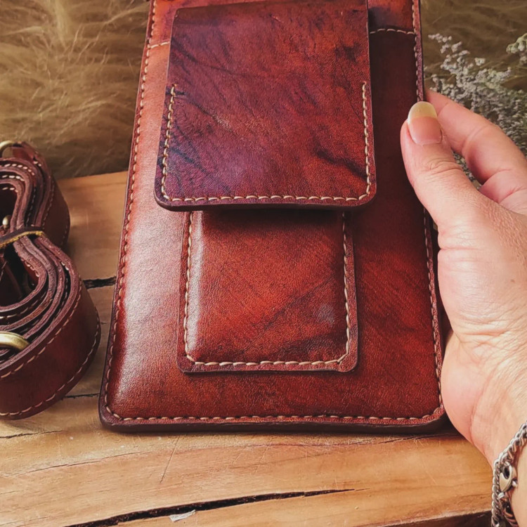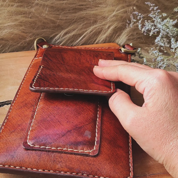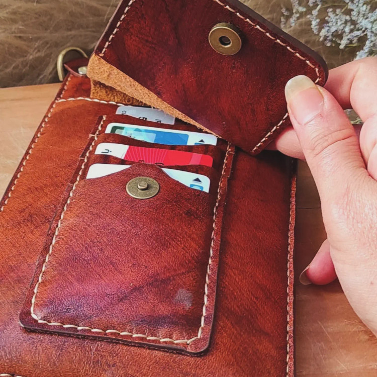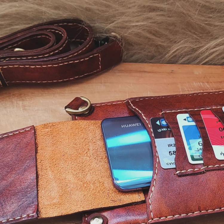 کیف چرمی کوچک و سبک و کاربردی .جای پول و کارت و جای موبایل داره